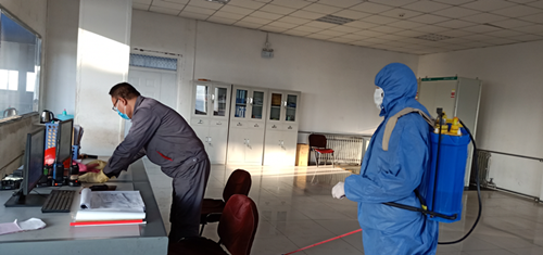 二是立即開展防范工作,安排專人每天按時對辦公樓、宿舍、食堂、各廠區車間、廠區地面及進出公司車輛進行全面消毒作業。