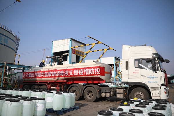 面對社會上消毒液緊缺,北元化工公司黨委迅速行動,周密部署,第一時間安排抽調骨干,組織生產次氯酸鈉消毒液,主動向政府和社會各界聯系無償捐贈次氯酸鈉消毒液。