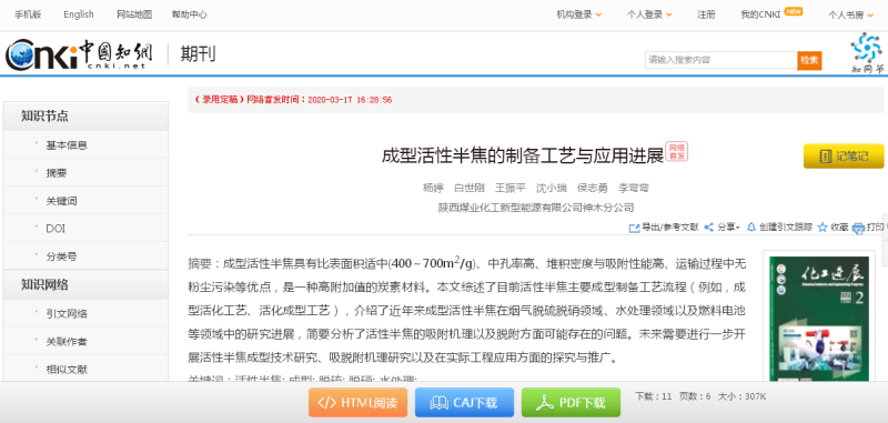 近日,由神木分公司研究團隊撰寫的論文《成型活性半焦的制備工藝與應用進展》被《化工進展》期刊錄用。