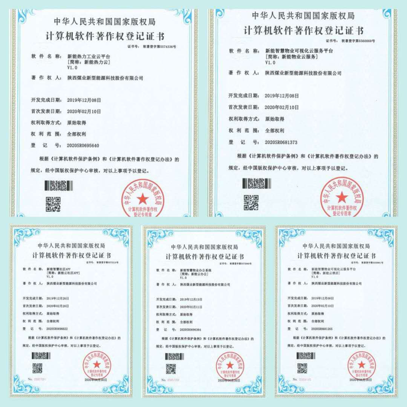 近日,國家版權局連續批準頒布了陜西煤業新型能源科技股份有限公司申報的智慧能源服務領域18項計算機軟件著作權登記證書、1項發明專利受理證書和5項實用新型專利受理證書。