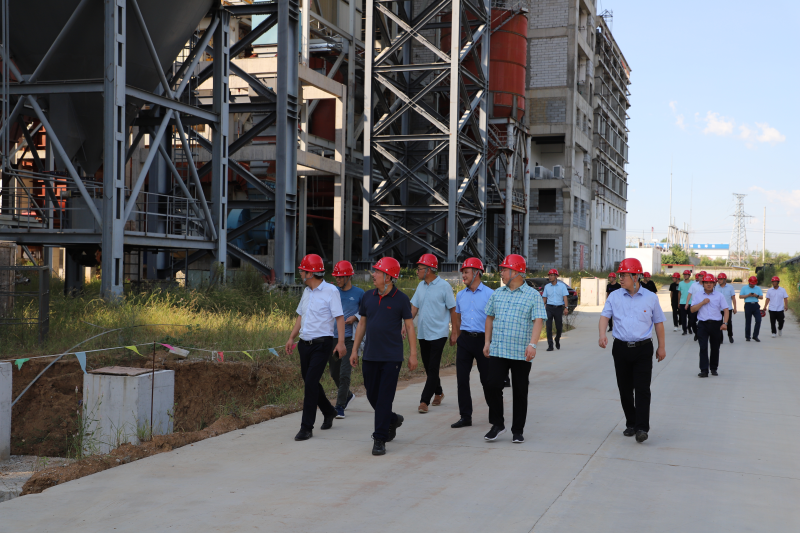 方剛一行與河南淮源公司董事長陳思霖、總經理崔平均及各部門負責人來到施工現場,并對施工現場情況做了全面了解。
