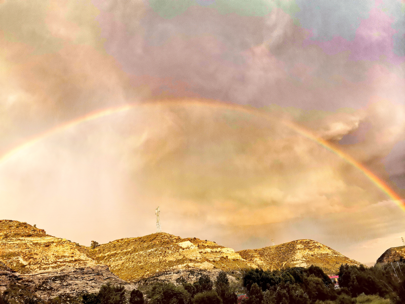 上次遇見彩虹不知曾幾何時,今日得見初秋之七色彩虹,心中很是愉悅,一天的疲憊都在這彩虹的映襯下褪去了不少。同事們紛紛拿出手機快速地記錄著這美好的一刻。彩虹過后,美麗的晚霞偷偷溜了出來,更是美上加美,仿佛這一天都是美與美的交換。