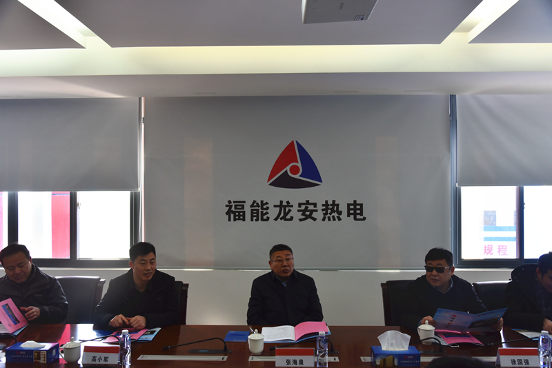 在隨后的座談會(huì)上,福能龍安熱電公司董事長(zhǎng)洪方明向張海泉一行介紹了龍安熱電的“12345”工作舉措,并著重介紹了技術(shù)創(chuàng)新的脫硫廢水濃縮減量項(xiàng)目和“7s”創(chuàng)新管理體系、全面預(yù)算管理體系、信息化系統(tǒng)建設(shè)等有關(guān)亮點(diǎn)工作。